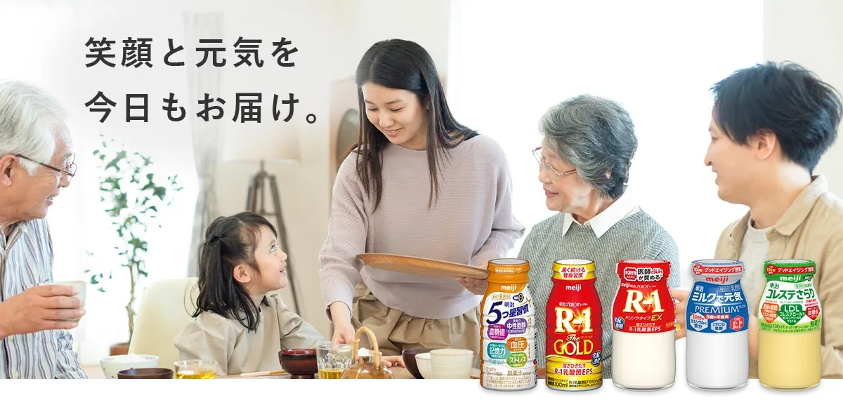 当社では、明治商品をはじめとして、「手軽においしく健康に」をモットーに商品をお届けしています。